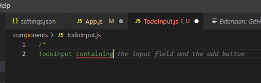 I ended up going with the 3rd solution and then utilized the new Components that were suggested and created new files for TodoInput.js and TodoList.js. Then I proceeded to write up comments for the file and it was smart enough to even suggest those comments!