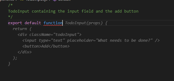 After the comment was written I proceeded to write the export statement here by default it suggested the default React Component function declaration. Since I’m used to writing functional components vs component classes I opted to write out the word function which it was also able to handle.